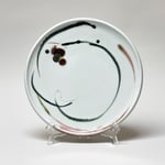 High fired porcelain dinner plate approximately 11". Dishwasher and microwave safe. Hand painted designs are similar but may vary. Flower comes in red or blue.